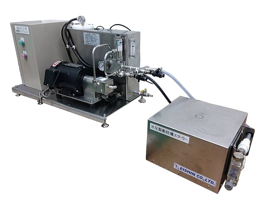 - 循環ポンプユニットは非防爆エリアに設置して、防爆エリアの水圧スターラーを運転します。